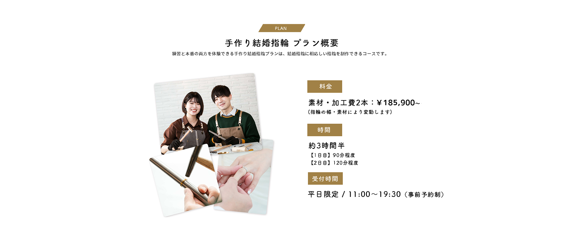 お互いに相手を想いながら作る時間は、おふたりにとってかけがえのない体験になります。手作り結婚指輪だけでなく、手作りする時間と想い出も大切にしています。