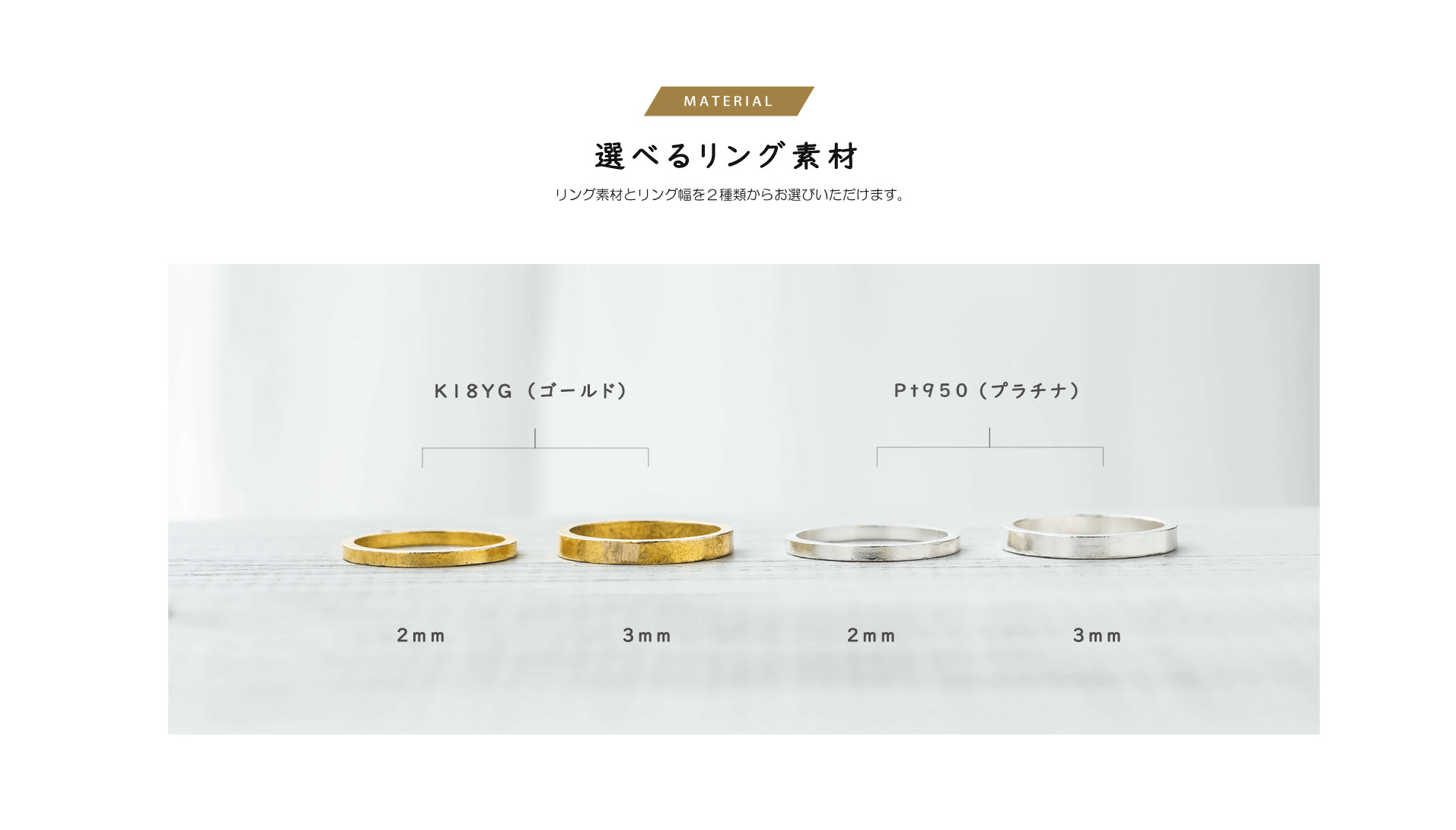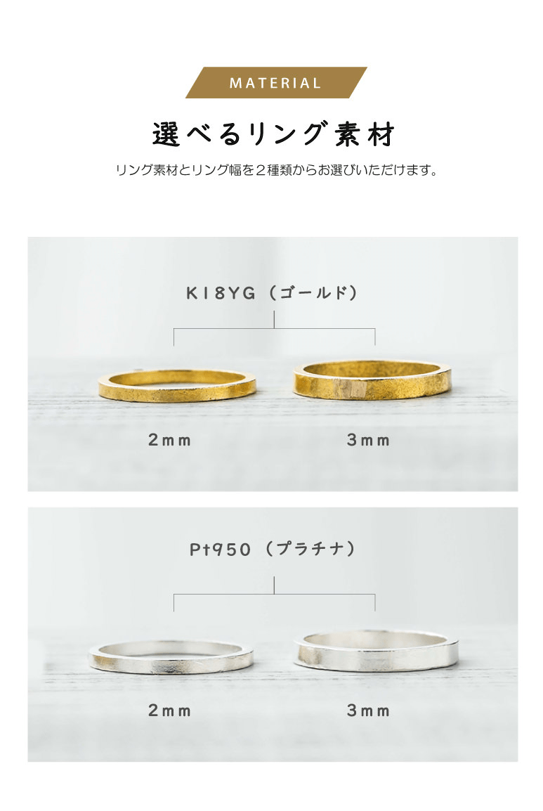 一生に一本の特別な結婚指輪だから、品質にもこだわりたい。“一生モノ”にふさわしい強度や耐久性に優れた素材を採用。当日は熟練の職人が指輪作りをサポートいたします。